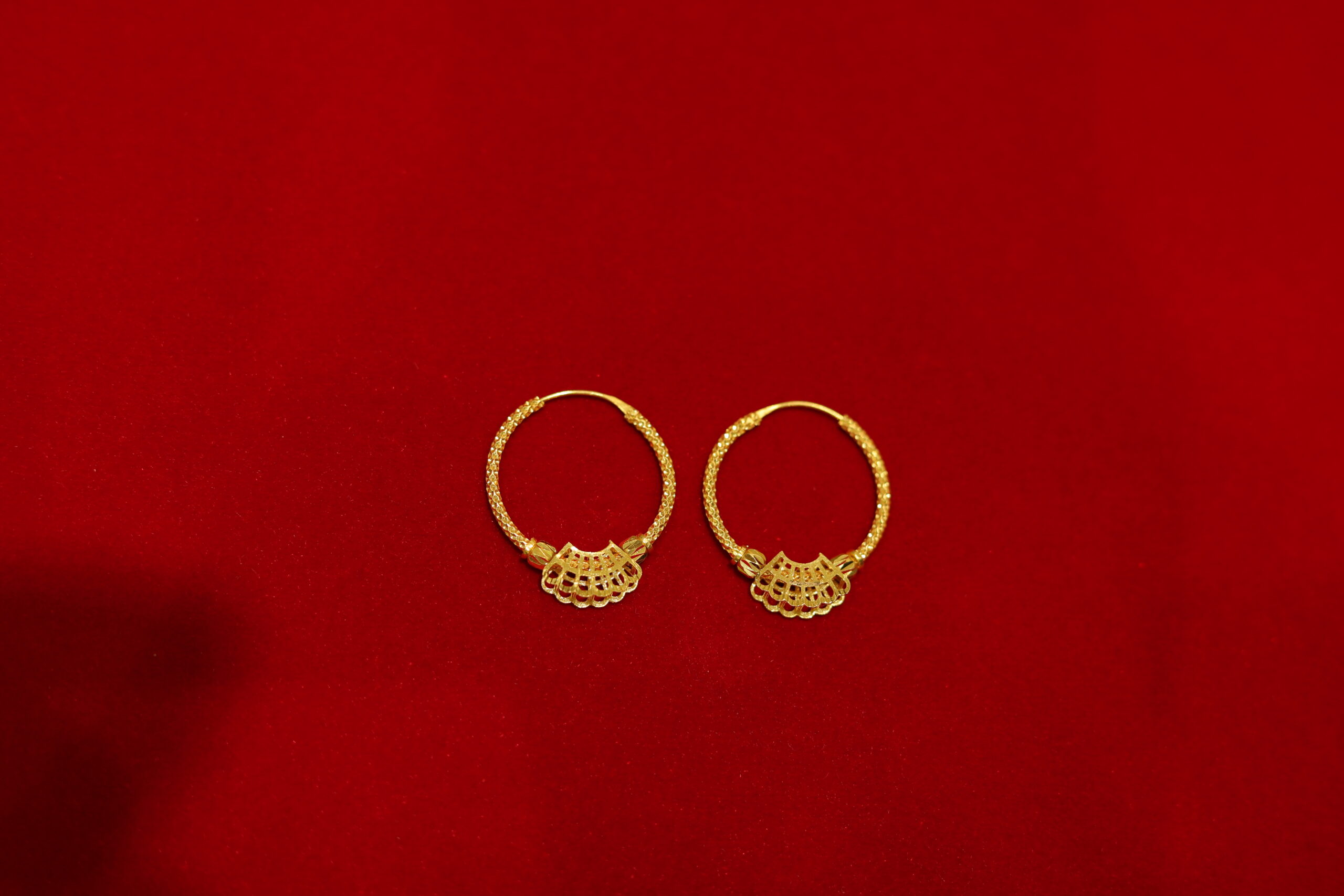 Gold-toned classic Indian Bali earrings featuring a circular design with a fan-shaped, latticework decoration. Ideal for daily wear, simple ceremonies, and occasions like birthdays and anniversaries, or even for gifting. This super-light, comfortable-to-wear pair of earrings can be worn by both girls and women.