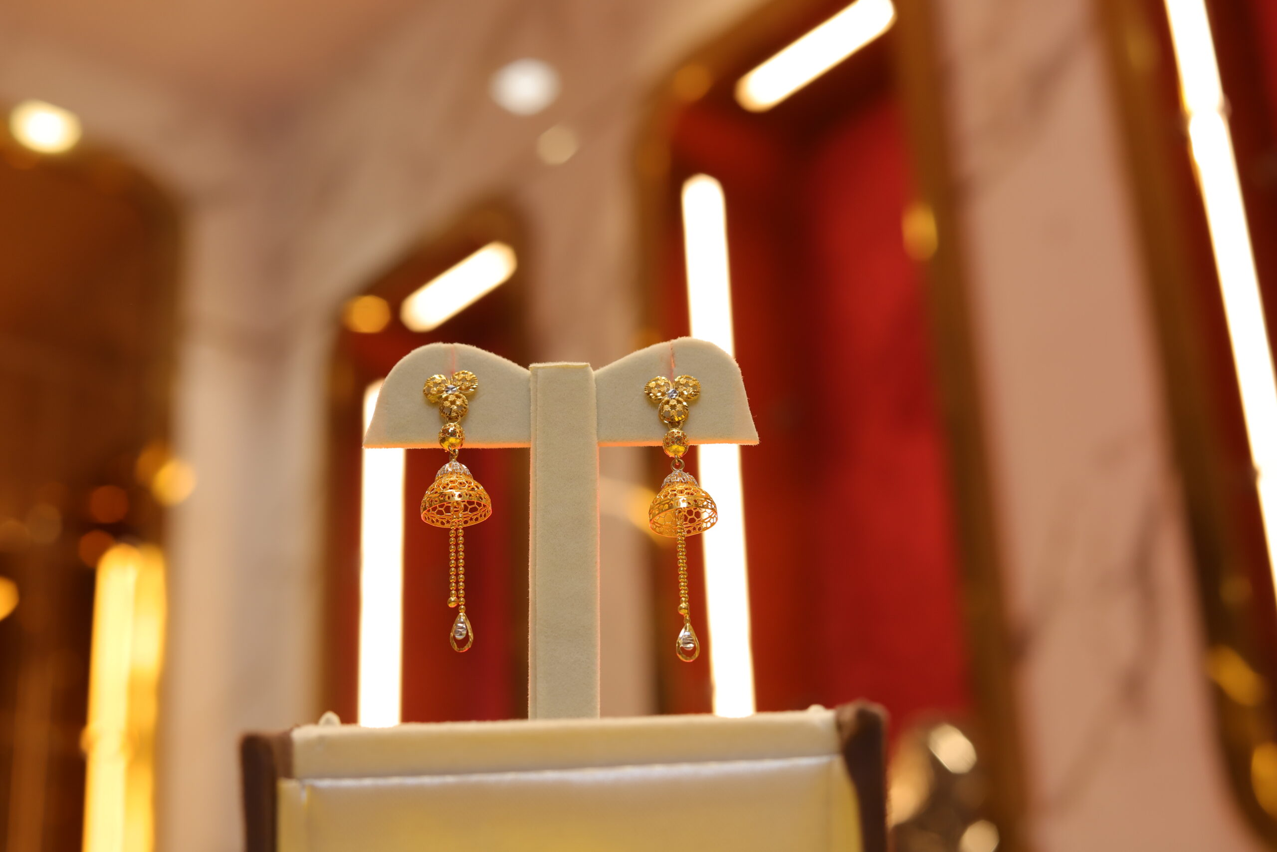 Fine craftsmanship meets intricate detailing in these charming gold-plated dangle earrings made from premium materials. These ornate earrings beautifully blend classic Indian heritage and contemporary sophistication, adding the ultimate touch of elegance and style to your everyday look.